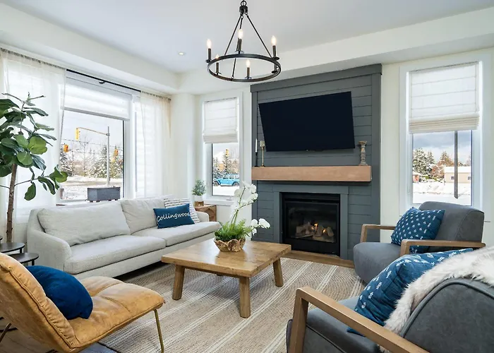 Blue Mtn Village Retreat Walk To Blue - Shuttle Collingwood villa ligt op circa 2 km van Iwa Spa en nodigt gasten uit om te genieten van een zonneterras. Het vakantiehuis ligt in de wijk Blue Mountain Ski in Collingwood en biedt parkeerplaatsen, evenals draadloos internet.